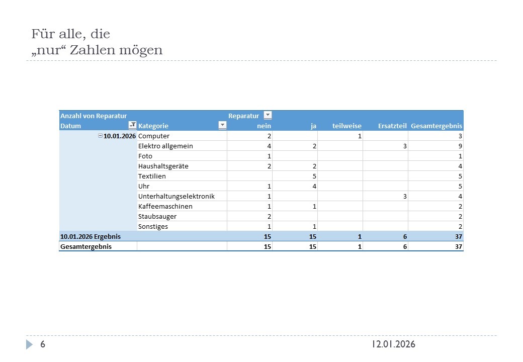 Hier finden Sie unsere ständig aktualisierte Reparatur Statistik mit Informationen rund um unsere Zahlen